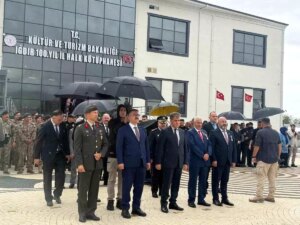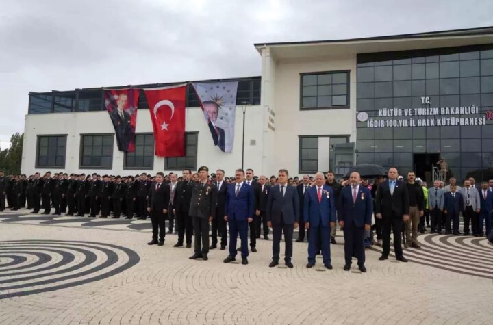 Iğdır'da 19 Eylül Gaziler Günü hasebiyle 100. Yıl Halk Kütüphanesi önünde çelenk sunma merasimi...